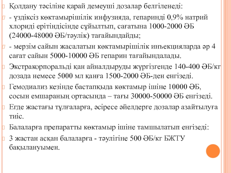 Слайд 7Қолдану көрсеткіштері мен мөлшерленуі.