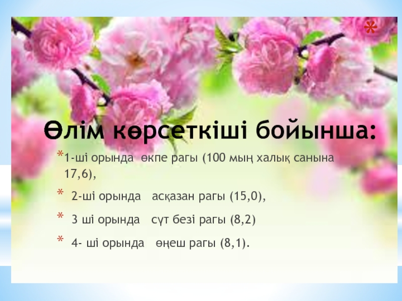 Слайд 17 Өлім көрсеткіші бойынша: