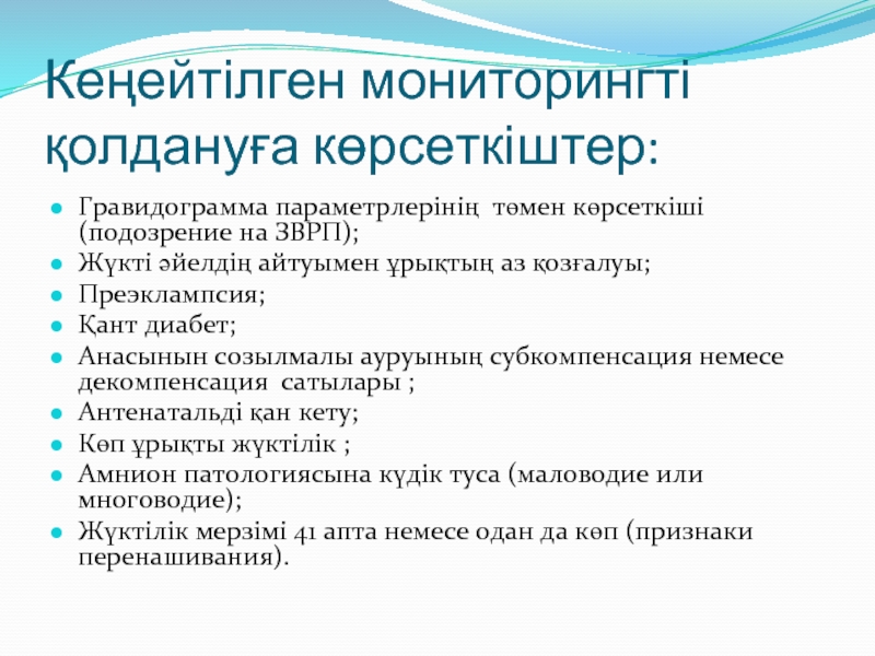 Слайд 22Кеңейтілген мониторингті қолдануға көрсеткіштер: