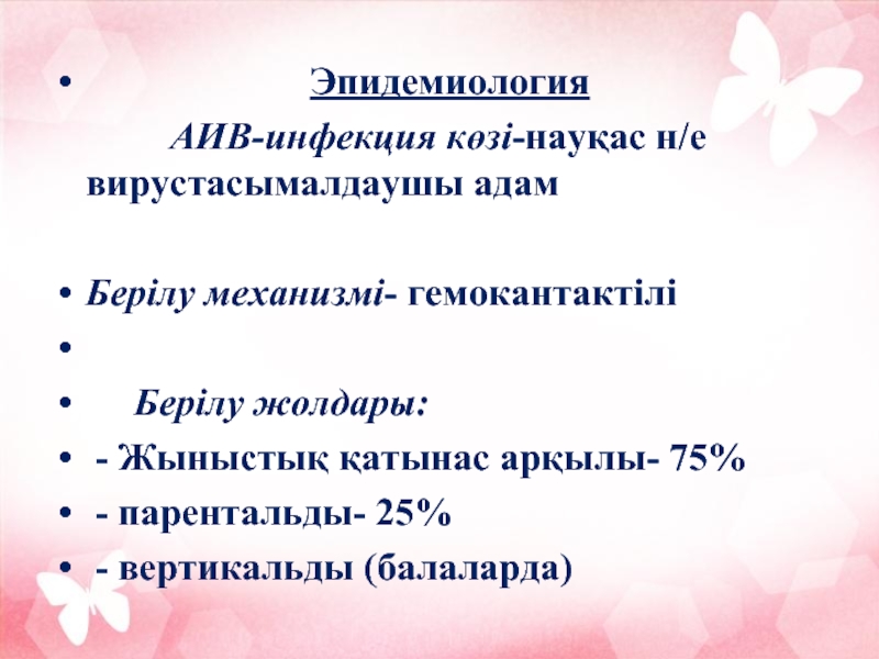 Тақырыбы: АИВ – инфекцияны анадан балаға жұғуын алдын алу. Кеңес беру ерекшеліктері. Перзентханада және әйелдер консультацияларында жүкті әйелдердің күтімі. АРВ профилактикасындағы АИВ – инфекцияның анадан балаға берілудің клиникалық сценарийлері. АИВ – инфекциясын жұқтырған анадан туылған баланың перзентханада, балаларемханасындағы күтімі. Тамақтандыруы.