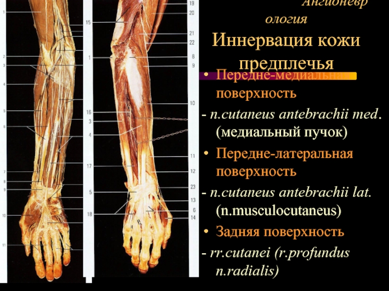 ветвями четырех нижних шейных спинномозговых нервов, частью передней ветви IV шейного и частью передней ветви I грудного (межреберного) нервов.