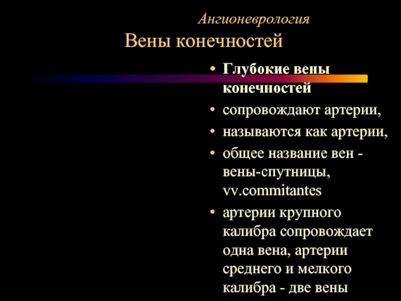 - вены спутницы, vv.comitantes, сопровождают артерии (если артерия