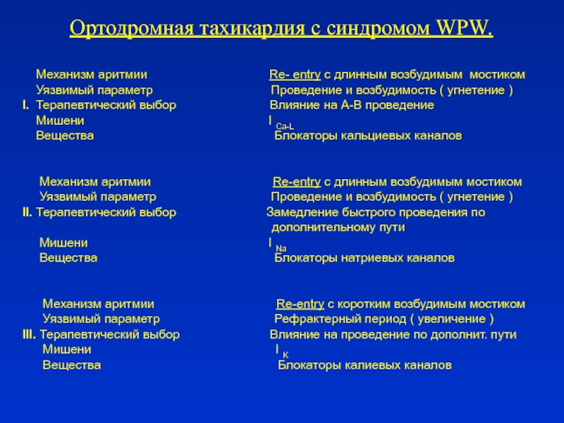 при длинном возбудимом мостике уязвимый параметр- проведение, которое должно угнетаться;