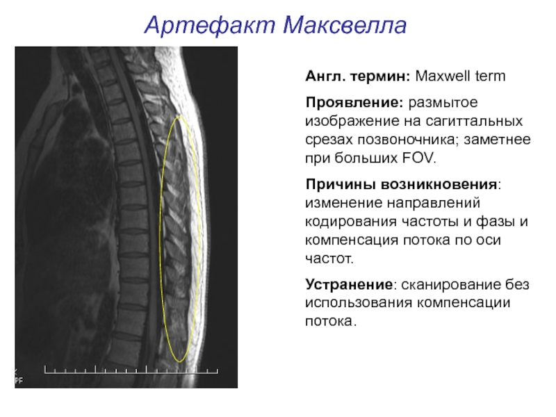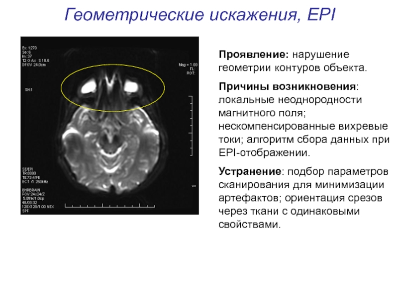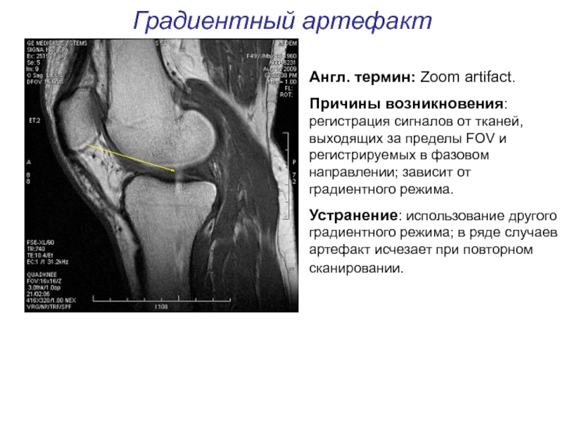 Устранение: использование другого градиентного режима; в ряде случаев артефакт исчезает при повторном сканировании.