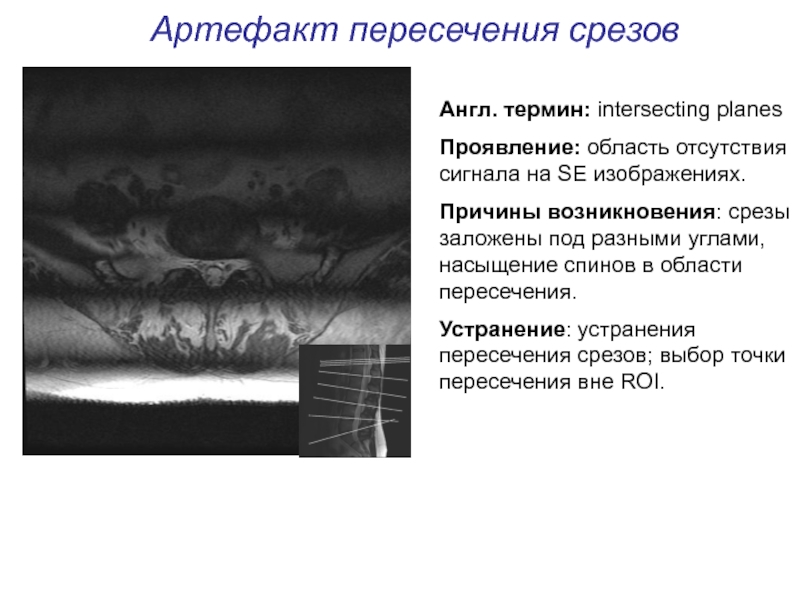 Причины возникновения: срезы заложены под разными углами, насыщение спинов в области пересечения.