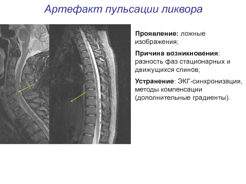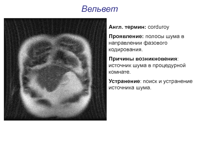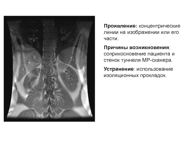 Причины возникновения: высокая чувствительность метода; в ряде случаев вызван неверной настройкой градиентной системы, вибрациями в сканере (криокулера, оборудования технической комнаты).