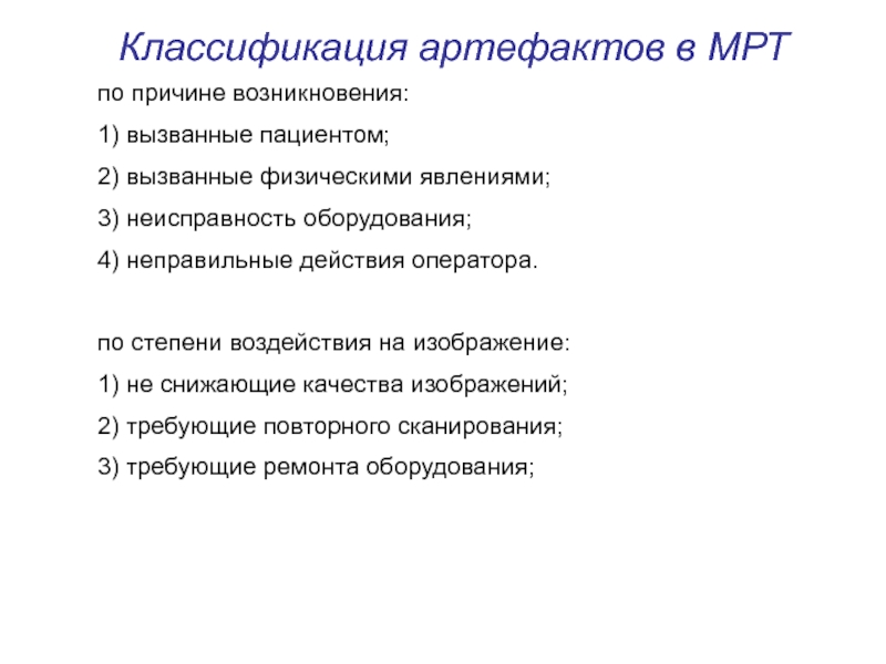 Устранение: подбор параметров сканирования для минимизации артефактов; ориентация срезов через ткани с одинаковыми свойствами.