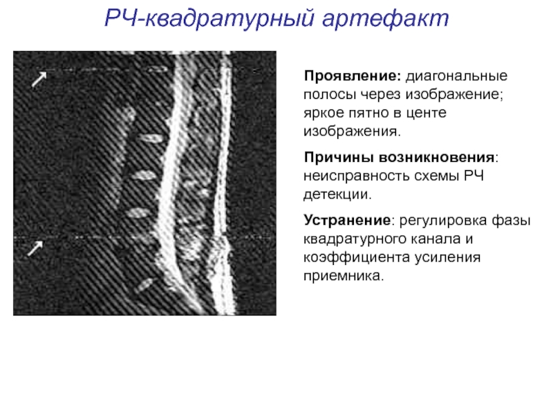 Причины возникновения: интерференция РЧ импульсов для соседних срезов, TR не дает полного восстановления сигнала, большой FA.
