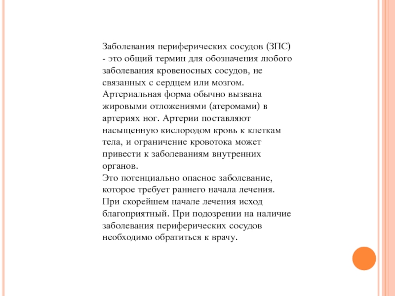 Слайд 2Заболевания периферических сосудов (ЗПС) - это общий термин для обозначения любого