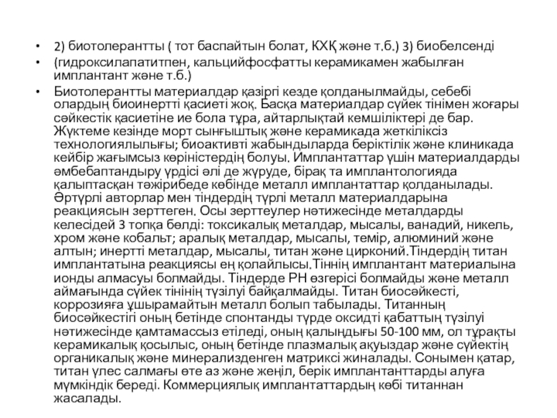 Слайд 172) биотолерантты ( тот баспайтын болат, КХҚ және т.б.) 3) биобелсенді
