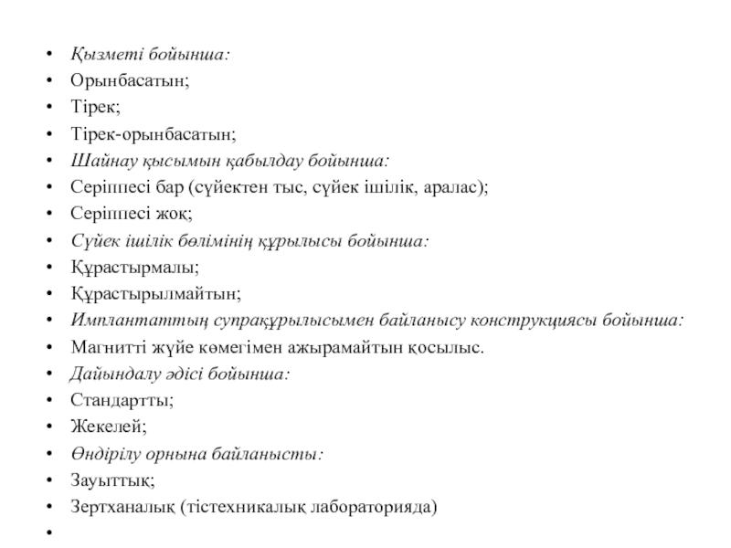 қажет етеді. Белгілі-бір белгі негізін ала отырып имплантаттардың тиімді бір жіктелуін құруға болады: