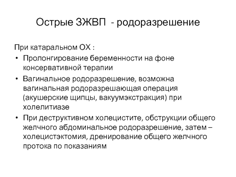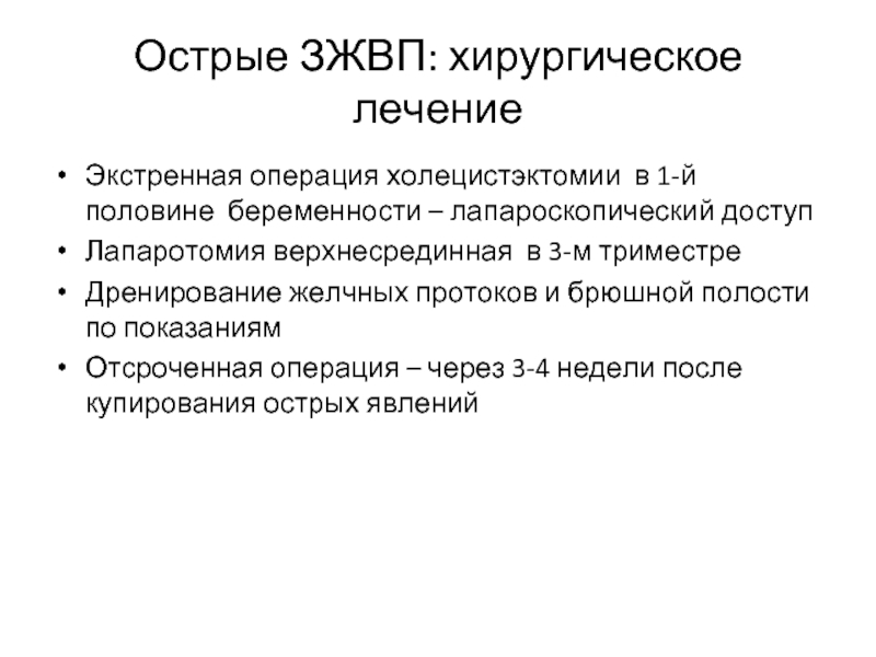 В 3-м триместре – абдоминальное родоразрешение, ревизия брюшной полости, ликвидация ОКН в зависимости от её формы