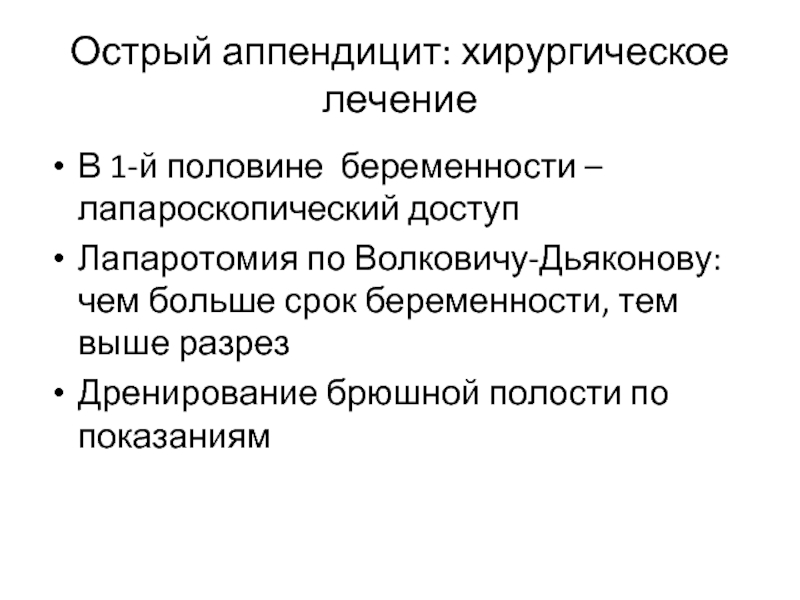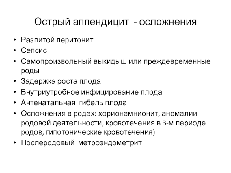Гангренозный и перфоративный аппендицит в 5-6 раз чаще, чем у небеременных