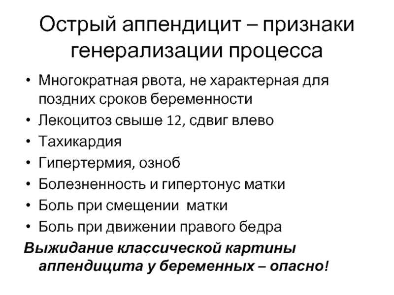 Слайд 15Острый аппендицит – признаки генерализации процесса