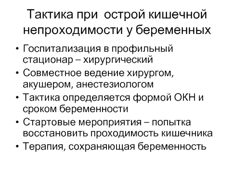 Слайд 56Тактика при острой кишечной непроходимости у беременных