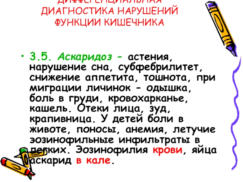 3.5. Аскаридоз - астения, нарушение сна, субфебрилитет,