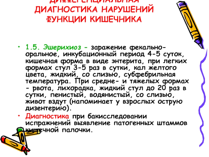 Слайд 5ДИФФЕРЕНЦИАЛЬНАЯ ДИАГНОСТИКА НАРУШЕНИЙ ФУНКЦИИ КИШЕЧНИКА