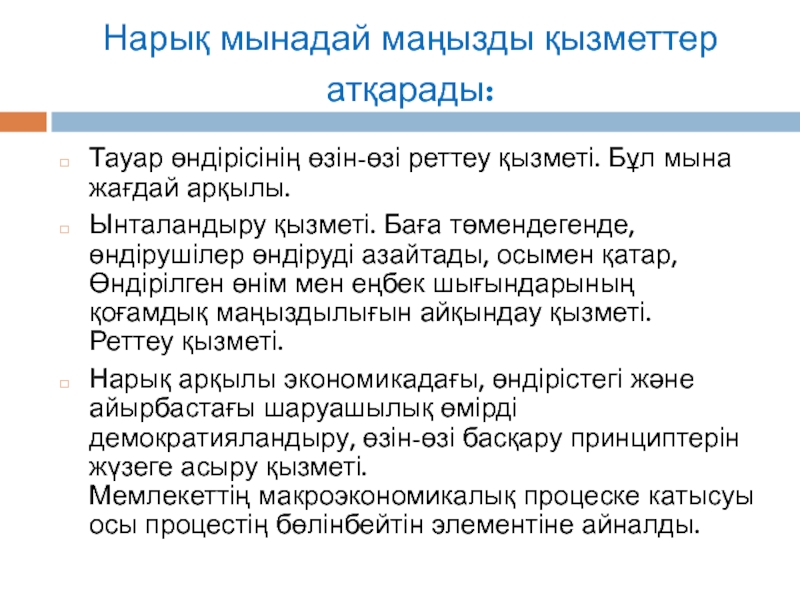 Слайд 3Нарық мынадай маңызды қызметтер атқарады: