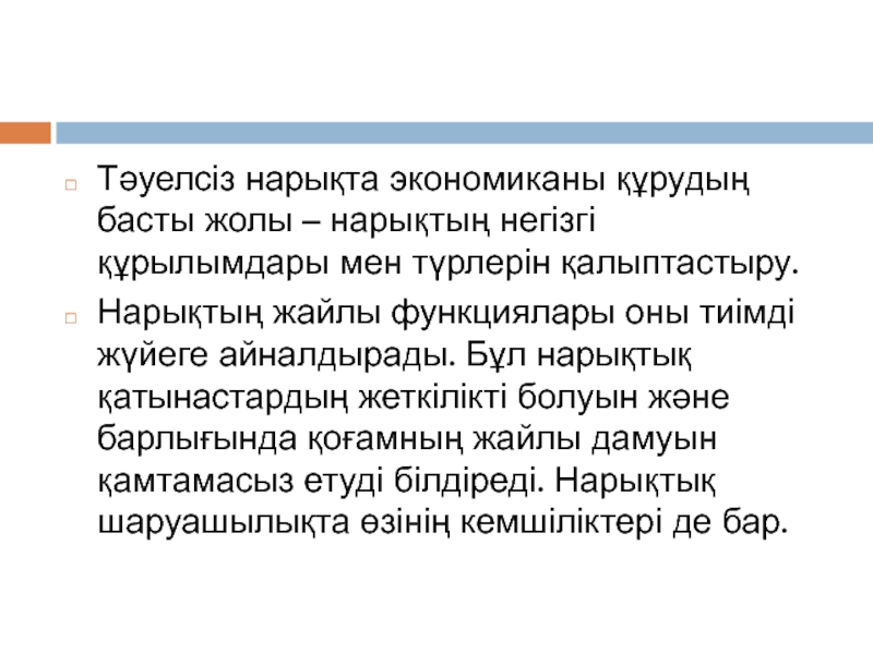 Слайд 6Тәуелсіз нарықта экономиканы құрудың басты жолы – нарықтың негізгі құрылымдары мен