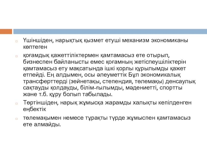 Слайд 8Үшіншіден, нарықтық қызмет етуші механизм экономиканы көптеген