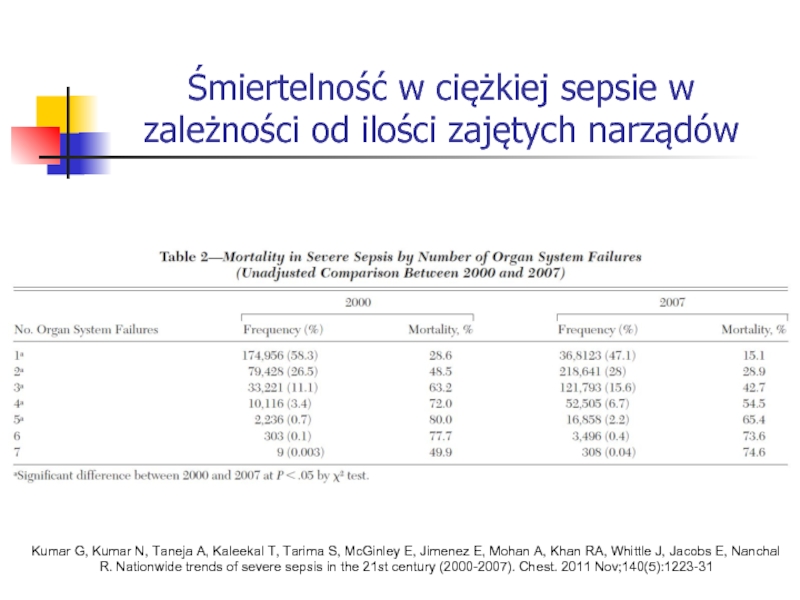Слайд 25Śmiertelność w ciężkiej sepsie w zależności od ilości zajętych narządów