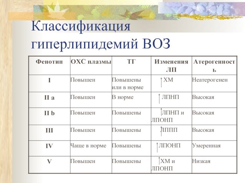 Слайд 16Классификация гиперлипидемий ВОЗ