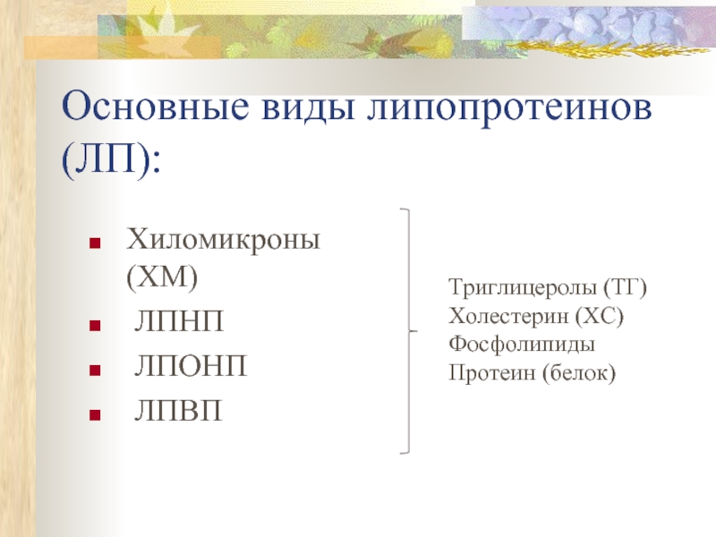 Слайд 3Основные виды липопротеинов (ЛП):