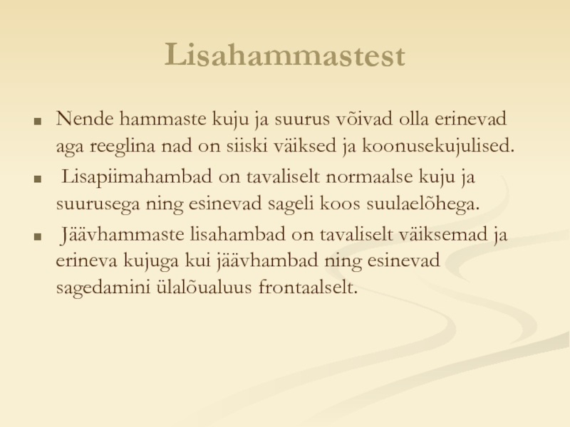 Jäävhammaste lisahambad on tavaliselt väiksemad ja erineva kujuga kui jäävhambad ning esinevad sagedamini ülalõualuus frontaalselt.
