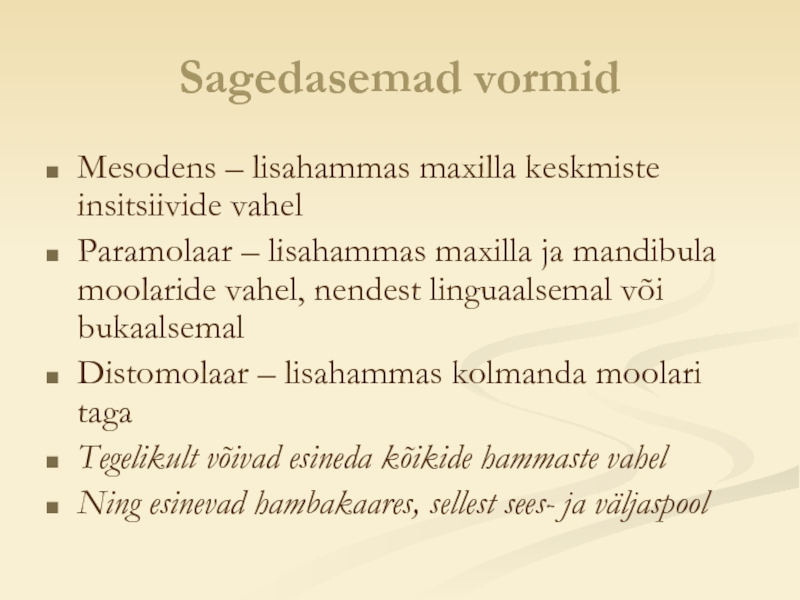 Mesodens – lisahammas maxilla keskmiste insitsiivide vahel