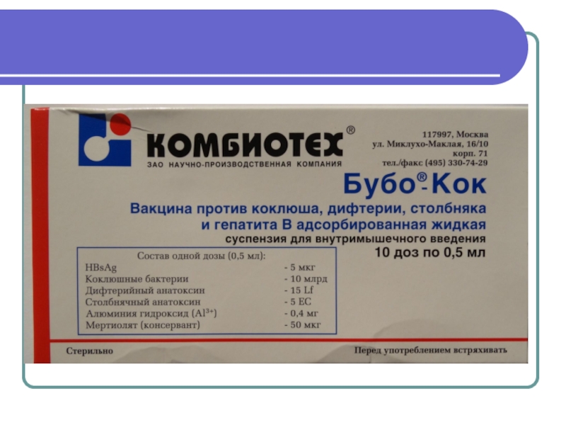 Слайд 10Прививка против дифтерии, коклюша, столбняка