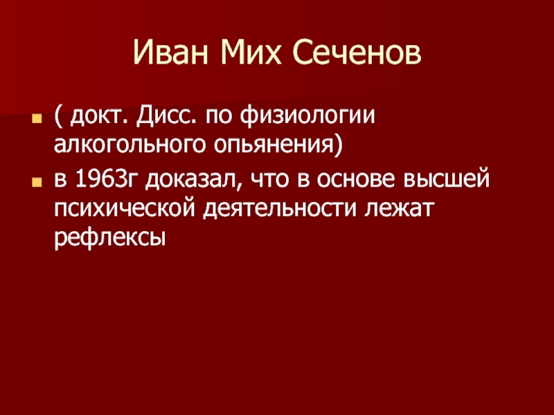 доказал, что в основе высшей психической деятельности лежат рефлексы