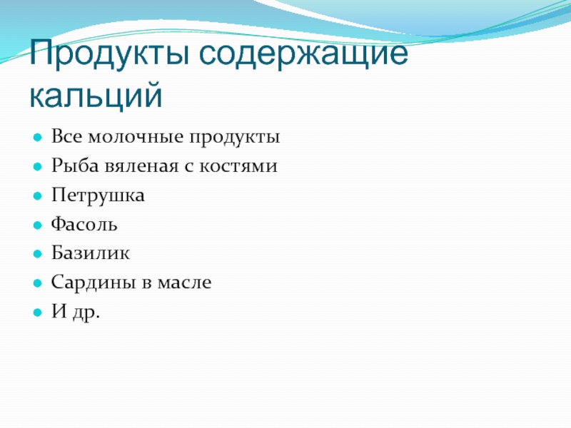 Слайд 7Продукты содержащие кальций