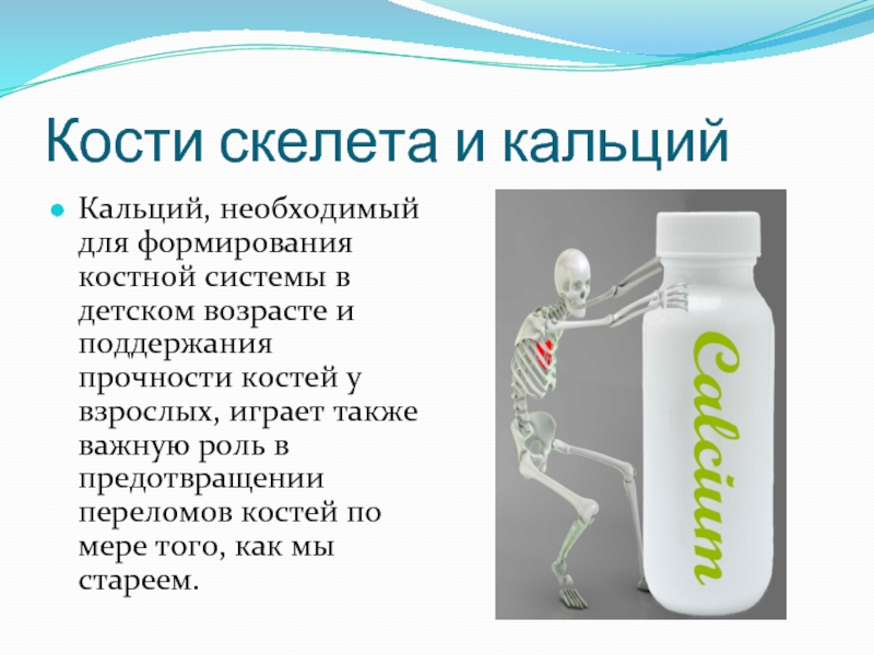 Слайд 5Кости скелета и кальций