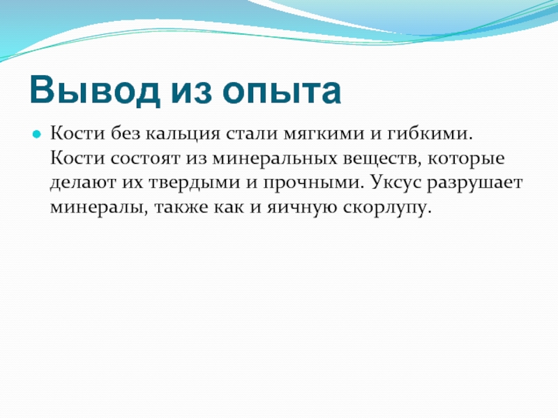 минеральных веществ, которые делают их твердыми и прочными. Уксус разрушает минералы, также как и яичную скорлупу.