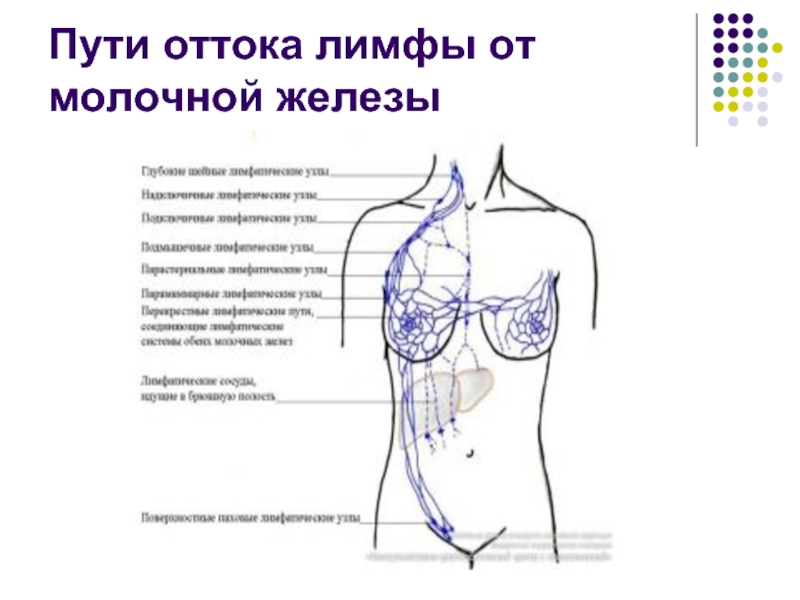 Слайд 20пути оттока лимфы от молочной железы