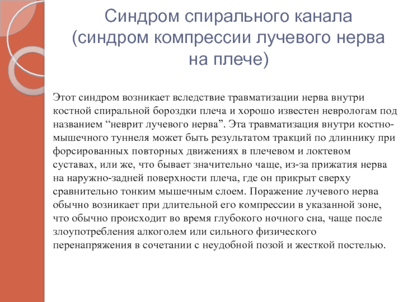 Слайд 27Синдром спирального канала