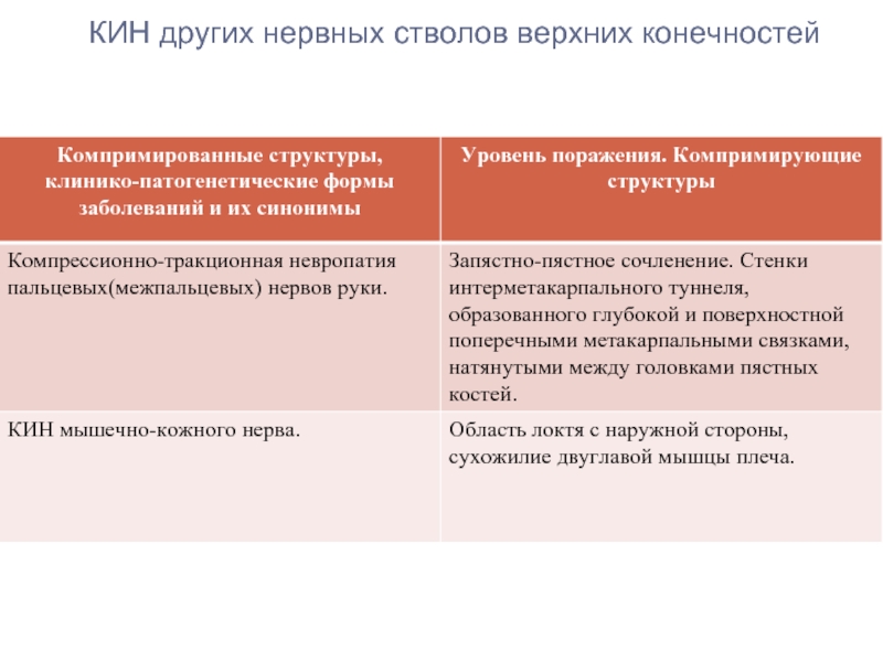 Слайд 6КИН других нервных стволов верхних конечностей