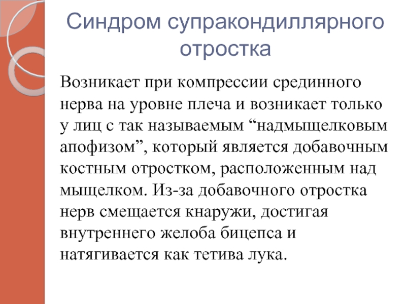Слайд 14Синдром супракондиллярного отростка