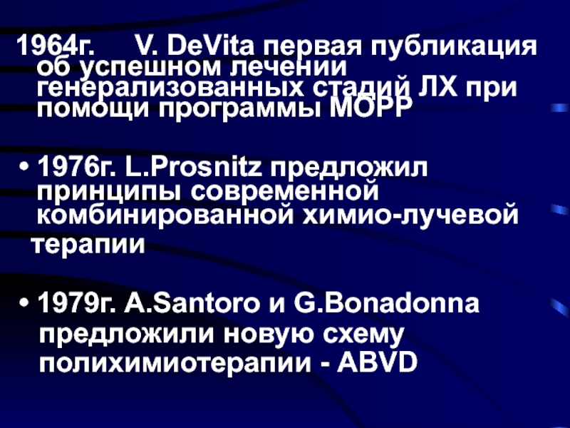 1964г. V. DeVita первая публикация об успешном лечении генерализованных