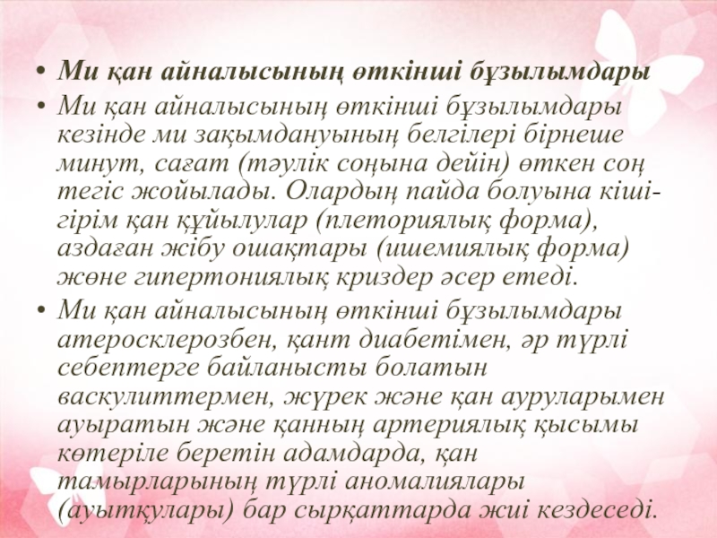 Слайд 3Ми қан айналысының өткінші бұзылымдары