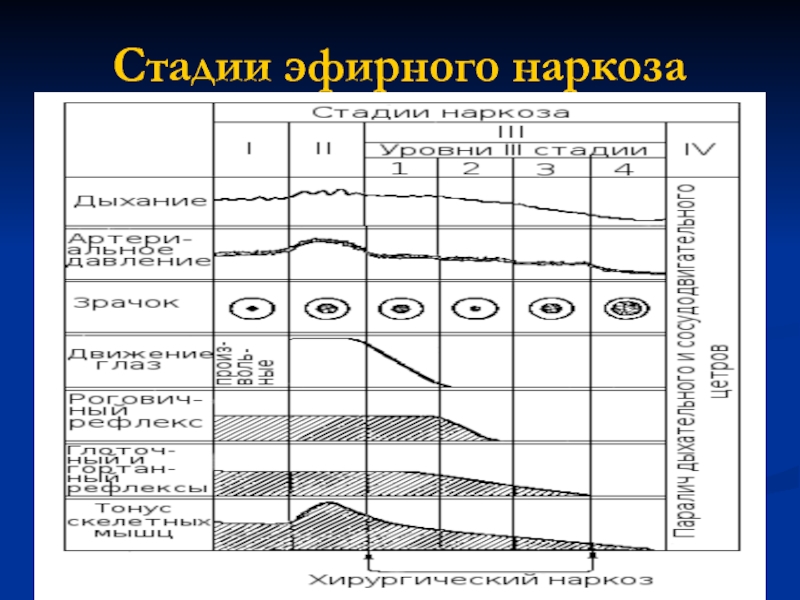 Слайд 18Стадии эфирного наркоза по Гведелу