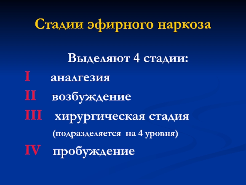 В зависимости от глубины наркоза различают 4 уровня III стадии наркоза.