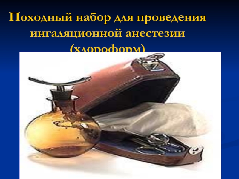 Слайд 14Походный набор для проведения ингаляционной анестезии (хлороформ)
