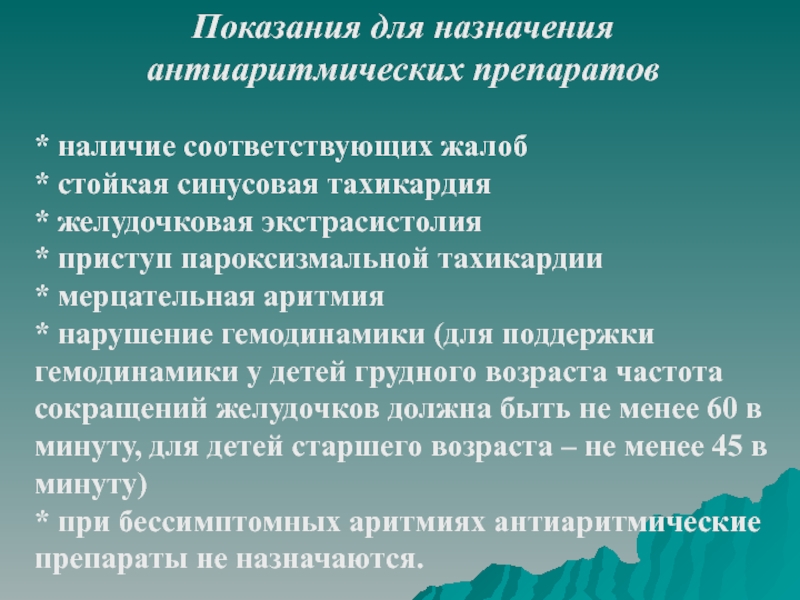 Слайд 44Показания для назначения антиаритмических препаратов