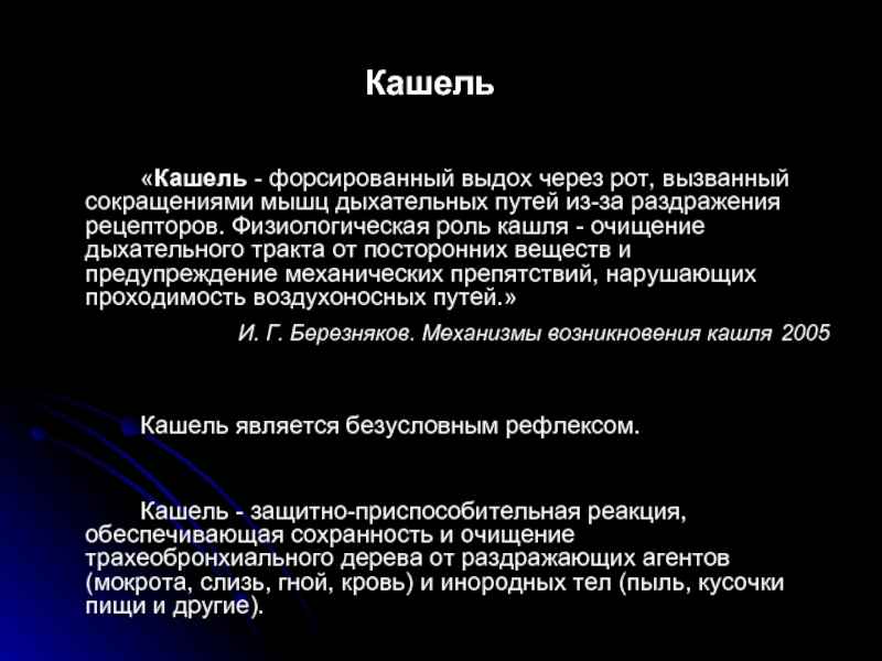 И. Г. Березняков. Механизмы возникновения кашля 2005