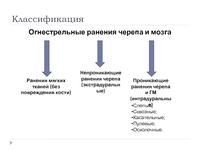 Проникающие ранения черепа и ГМ (интрадуральные)
