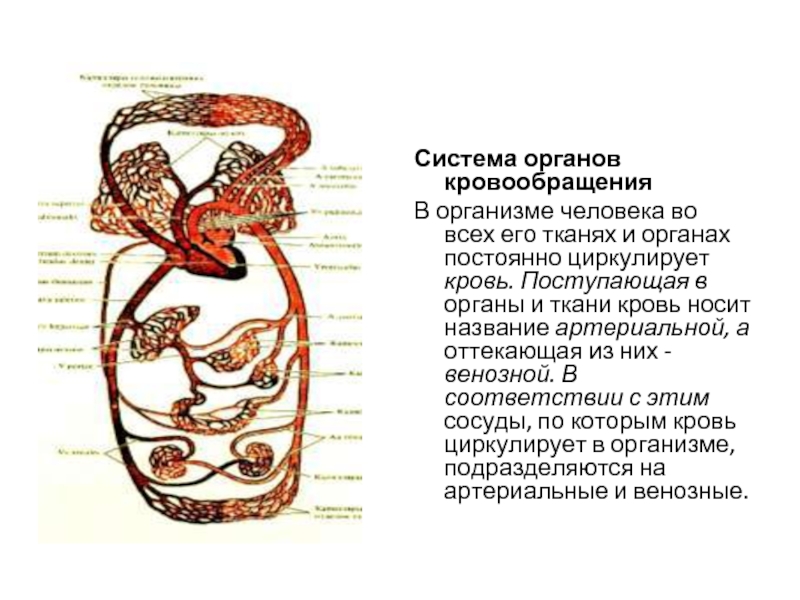 постоянно циркулирует кровь. Поступающая в органы и ткани кровь носит название артериальной, а оттекающая из них - венозной. В соответствии с этим сосуды, по которым кровь циркулирует в организме, подразделяются на артериальные и венозные.