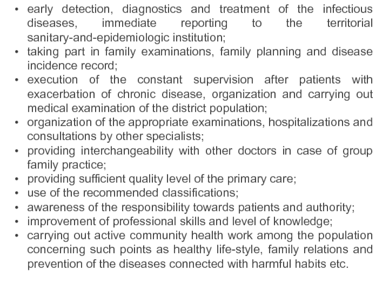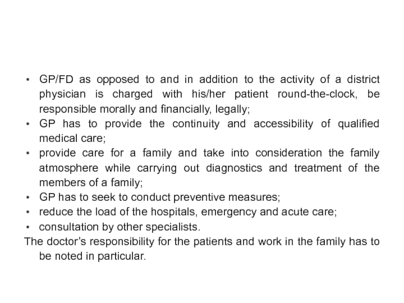 Слайд 29According to the different authors data the tasks of GP/FD comprise: