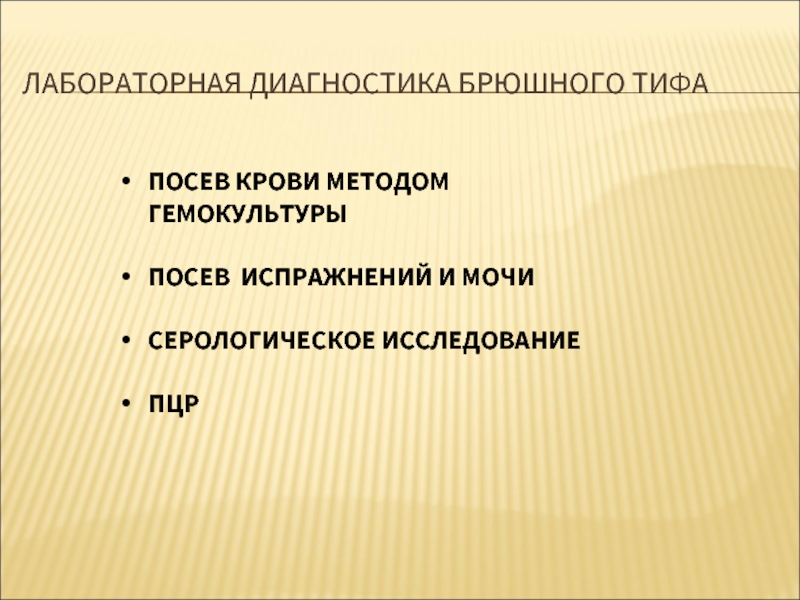 Слайд 22ЛАБОРАТОРНАЯ ДИАГНОСТИКА БРЮШНОГО ТИФА