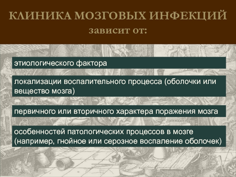 особенностей патологических процессов в мозге (например, гнойное или серозное воспаление оболочек)